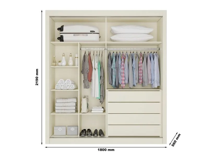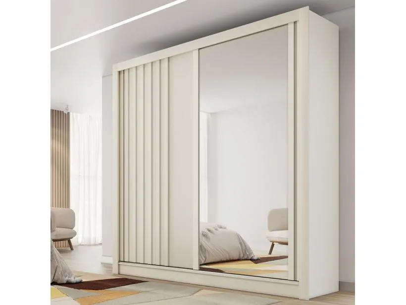 Apresentamos o Guarda Roupa Casal Ripado com Espelho 2 Portas de Correr em MDF Lugano Made Marcs, um móvel de alta qualidade confeccionado 100% em MDF. Este guarda-roupa possui duas portas, uma espelhada e outra com detalhes ripados, que trazem um toque de sofisticação ao seu ambiente. Com quatro gavetas internas espaçosas, o Lugano oferece um amplo espaço interno para organizar suas roupas e acessórios. As prateleiras organizadoras são ideais para manter tudo no lugar e ao seu alcance. Escolha o guarda-roupa Lugano e transforme seu quarto com estilo, qualidade e funcionalidade.